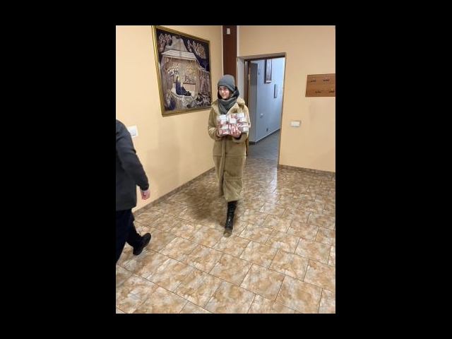 Lo stesso ho fatto anche con un deposito di alimenti, ho fatto il necessario e poi ho acquistato i beni. Devo dire che sia la farmacia che il deposito di alimenti ci ha dato un po’ di più alimenti e cibo, cioè hanno fatto anche loro un’offerta in cibo e medicine, al di la di quelle vendute, per aiutare la gente ucraina in bisogno.