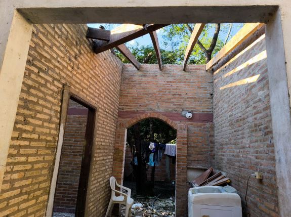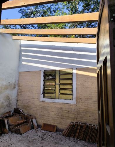 a. Demolizione del tetto: rimozione di tegole, scandole e travi.