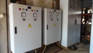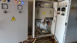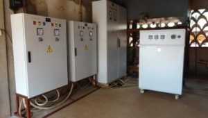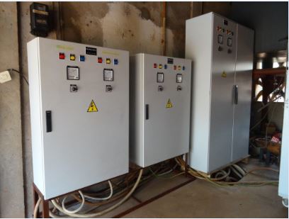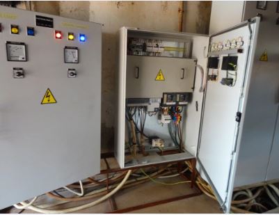 La cabina è situata in una struttura vicino al vescovado. Alla missione, l’installazione elettrica è centralizzata,permette alla sorgente, attraverso le pompe di far arrivare l’acqua al deposito. E’ l’unico sistema elettrico che permette il pompaggio dell’acqua potabile, diminuendo le spese di gasolio, di olio, dei filtri, ecc…. Tutto ha funzionato bene per molti anni, fino al giugno 2015.