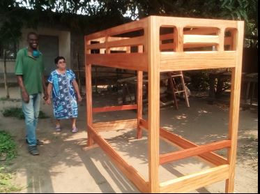 I letti a castello sono quasi terminati, ed abbiamo trovato un bravo falegname, ed è davvero tanto contento di realizzare questo progetto per noi al fine di sostenere la sua famiglia molto numerosa! Pero’ ci chiede di montare i letti nelle camere una volta che i 20 letti saranno terminati (al fine di evitare troppe spese di trasporto e di montaggio a carico nostro!) pero’ abbiamo già montato un letto e lo potete vedere nelle fotografie.