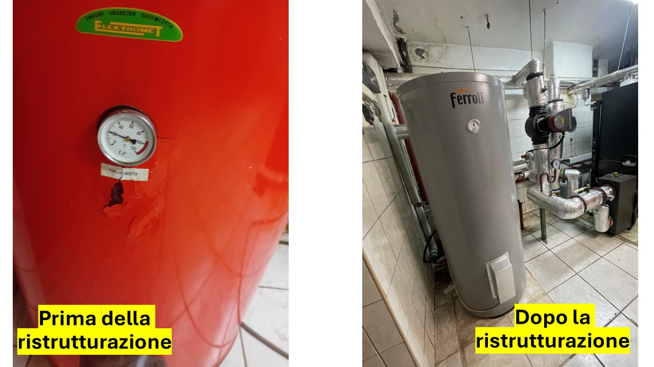 L’impianto caldaia della scuola è ormai vetusto: guasti improvvisi della vecchia centrale; la sicurezza di continuare le lezioni durante i periodi invernali (interruzione o spostamento delle lezioni) insieme alla fornitura di acqua calda.