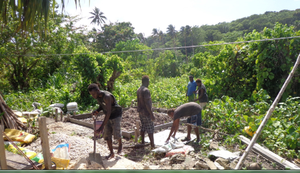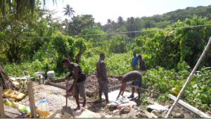 L’aggiunta del nuovo pozzo nero, non incluso nel progetto iniziale ma ritenuto indispensabile dal nostro volontario idraulico, ha condizionato lo sviluppo dei lavori per mancanza del materiale non ordinato lo scorso anno e percio’ assente sul cantiere. Il nuovo pozzo ha avuto bisogno di prismi (bolognini) in cemento e di un nuovo quantitativo di cemento ne tondini di ferro. La distanza da Honiara a Nila e’ di 553 Km in linea diretta ma molti di piu’ per rotta delle navi. La difficoltà dell’isolamento è appunto questa e allunga i tempi in modo incredibile. Il movimento ondoso dell’oceano nei sei mesi da Aprile a Settembre e’ imprevedibile e pericoloso.