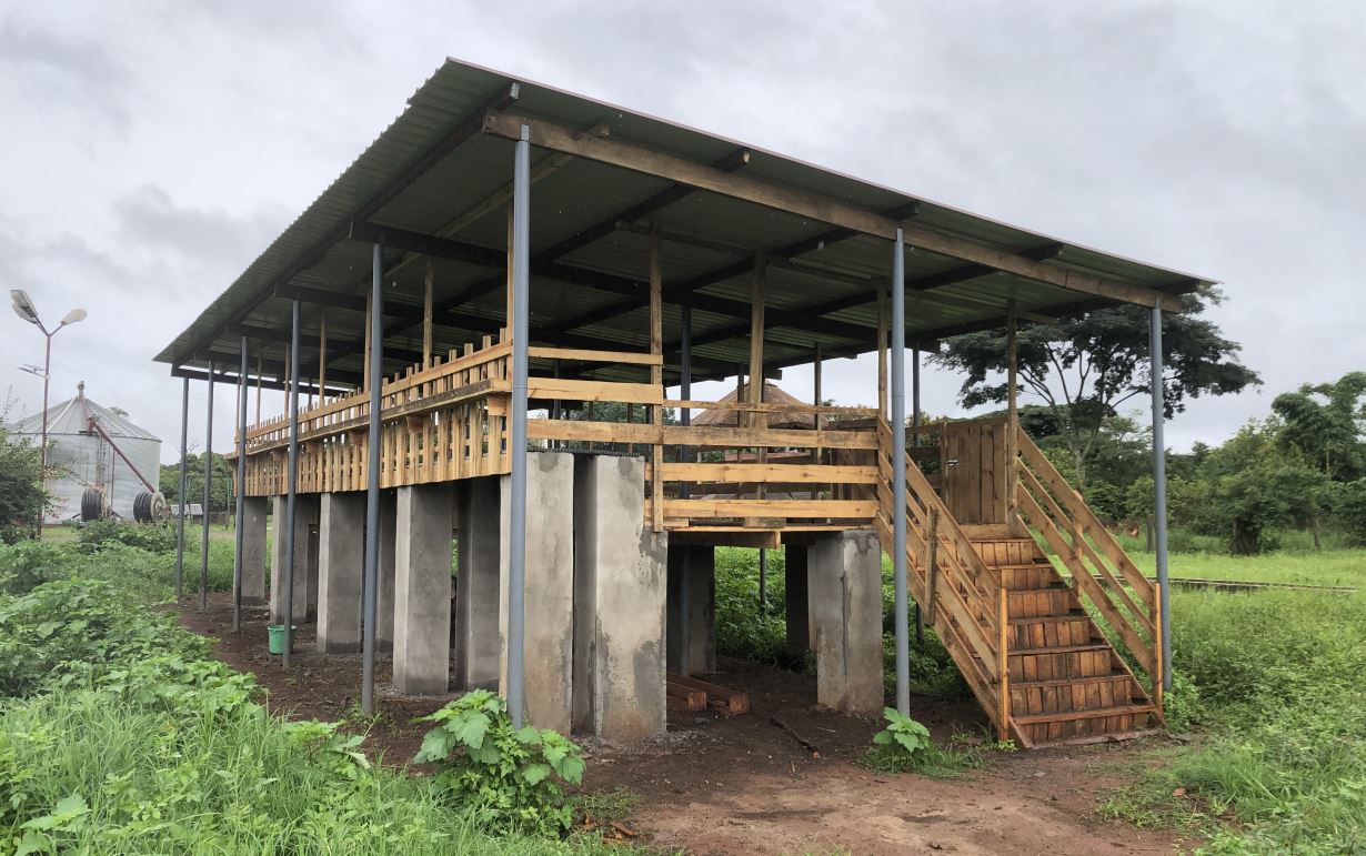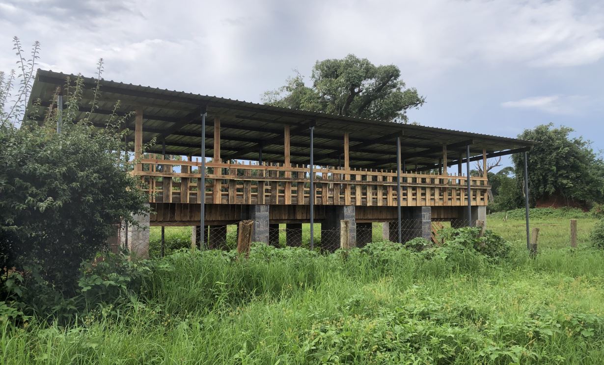 Per quanto riguarda invece la stalla, dopo aver pulito e livellato il terreno sono stati installati 18 pali che andranno a sorreggere sia la tettoia che la piattaforma rialzata (foto). I pali sono stati messi a 50 cm di profondità. La prossima settimana verranno costruite le colonne di mattoni che contribuiranno a sorreggere la struttura rialzata.