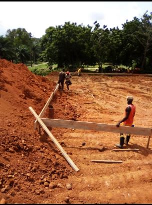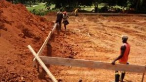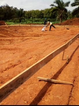 I lavori fatti con la prima rata: livellamento del terreno, scavo delle fondamenta e gettata, e pareti con i blocchi di cemento fino all’altezza in modo da realizzare il riempimento con materiale – laterite per poi fare la gettata di cemento – pavimento dell’edificio.