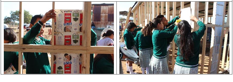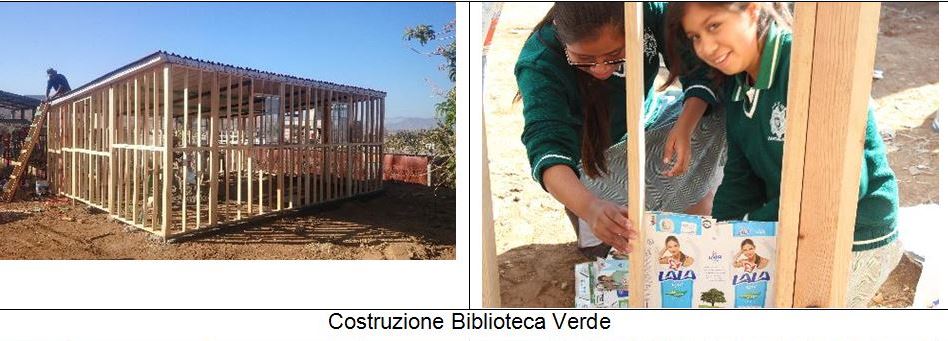 Cosa sono le Biblioteche verdi? Vengono realizzate con una tecnica costruttiva innovativa e certificata, realizzate con materiale di riuso come il PET e il Tetrapak. La costruzione, struttura prefabbricata in legno rivestita di cartoni di tetrapak e riempita con bottigliette di PET riciclate, ha il vantaggio di essere colorata ed accogliente, con eccellente isolamento termico che le rende fresche in tutte le ore del giorno, è economica, la quantità di cemento utilizzata è esigua (solo per la base) e viene costruita in 7 giorni, con l’aiuto di molti volontari. Per una costruzione si utilizzano circa 8.000 bottigliette PET e 10.000 cartoni tetrapak riciclati. Per il momento ne sono state realizzate 3, ma ci sono 9 scuole nella zona che hanno chiesto di partecipare al progetto.
