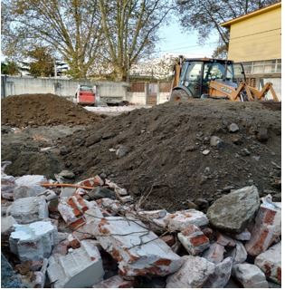 Pavimento campo sportivo: Tutti i lavori preventivati, appaltati ed eseguiti sono stati completati. Il solaio, dopo il riempimento e la compattazione, è stato realizzato, essendo un calcestruzzo di 10 cm, con un rinforzo alle sollecitazioni di trazione a cui il materiale è naturalmente sottoposto, con macrofibre sintetiche.