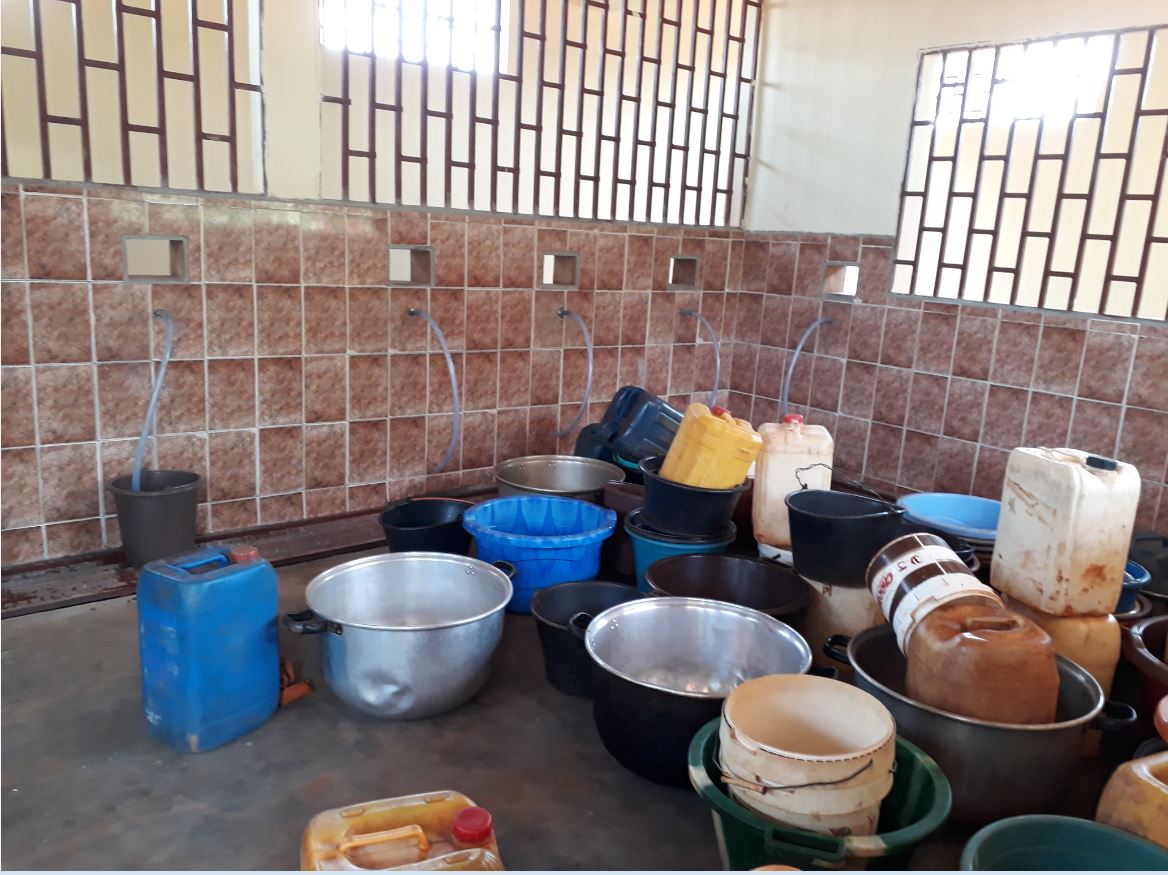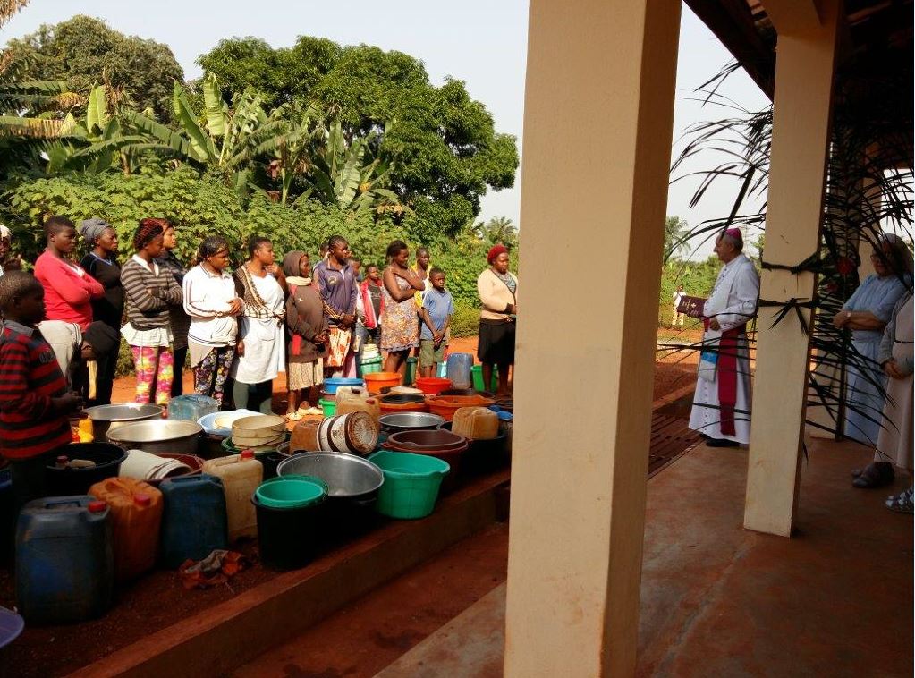 Scopo di questa richiesta è quello di installare un meccanismo per la distribuzione dell’acqua, presso la scuola materna, controllato da una sentinella. Presso la missione è già stato realizzato un grande raccoglitore-serbatoio (castello), dove grazie alle pompe arriva l’acqua. Per questa nuova realizzazione si devono aggiungere ancora metri di tubi per far salire l’acqua al serbatoio e poi scendere in uno scavo di 600mt fino al nuovo distributore. Verrà inoltre installato, da e a carico dello Stato, un sistema elettrico di distribuzione, paragonabile a una pompa di benzina.
