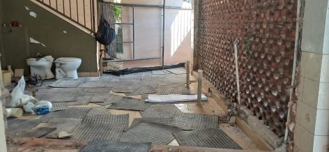 Questa settimana verranno posizionate anche le grondaie e la costruzione della fontanella. Una volta terminato questo settore, lo abiliteremo, a Dio piacendo, e procederemo con il bagno delle donne.