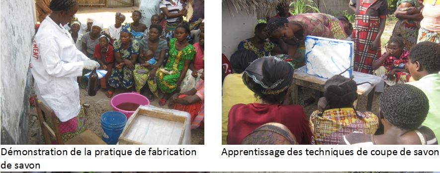 Sono state individuate 225 donne su 1193 persone nella sola città di Kabalo ai limiti della sopravvivenza. Per 80 di queste, hanno pensato di proporre una attività generazione reddito con produzione di sapone, già attiva in altri villaggi. Oltre alla formazione tecnica, verrà fornita l’attrezzatura e le sostanze necessarie per la produzione, che poi rivenderanno nei mercati locali. Dal ricavo della vendita verrà poi tolta una quota da restituire per il fondo di rotazione.