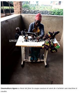 Alcuni esempi di mutuo-aiuto: durante il covid, 20 donne sono state aiutate in alimenti, farina, fagioli, olio, utilizzando 530.000frw del capitale, altre 20 hanno ricevuto 50.000frw, rimborsabili in 6 mesi, senza interessi, hanno sostenuto Clementina, orfana di entrambi i genitori, a un corso professionale per 5 mesi pagando 100.000frw per le tasse e al termine hanno acquistato la macchina da cucire per 140.000frw.