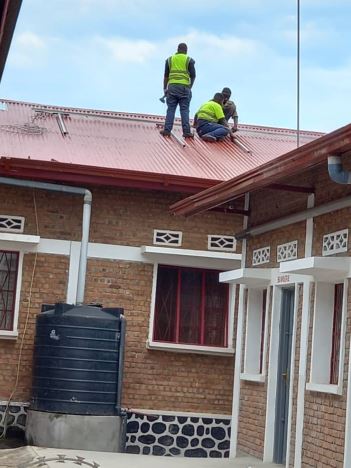 Questo non tanto per il ritardo rispetto ai tempi previsti ma piuttosto per le condizioni che nelle ultime settimane si sono verificate nel nostro Paese e nel Kivu in particolare. Considerato che il grosso dei materiali necessari alla realizzazione del progetto (i pannelli solari e tutto quanto ad essi attiene) provenivano da Bukavu – la capitale della provincia del Sud Kivu – e considerata la crescente instabilità che nella regione si sta vivendo a seguito delle elezioni presidenziali che si sono svolte nella Repubblica Democratica del Congo il 20 dicembre dello scorso anno, ho ritenuto prudente organizzare il trasporto di detti materiali negli stessi giorni in cui a Uvira – una volta ricevuta la prima rata del vostro indispensabile contributo sul conto bancario – gli operai hanno provveduto a mettere a nuovo la copertura, che necessitava di un accurato e urgente intervento di restauro. Il tetto, costituito da lamiere che esposte al sole e alle piogge si sono via via deteriorate, è stato così rapidamente sistemato e messo a nuovo.