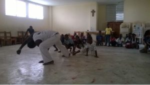 Il presente progetto mira ad applicare la Capoeira come attività educativa fondata sui valori del rispetto, della pace, della non violenza e della risoluzione pacifica dei conflitti. Questo intervento è eseguito tecnicamente da una Ong brasiliana di Rio de Janeiro, «Viva Rio», che dal 2003 lo promuove nelle favelas e dal 2008 lavora in una zona molto vulnerabile della capitale haitiana, Bel Air. Altro aspetto fondamentale è la parte di formazione dei giovani animatori, che a loro volta possono diventare monitori/allenatori di capoeira. Si tratta di un progetto complesso, non solo sportivo, ma a scopo sociale. I beneficiari saranno 100 ragazzi che verranno selezionati per questa prima esperienza.