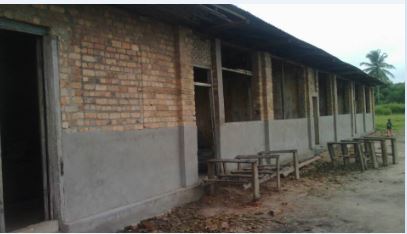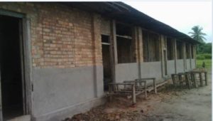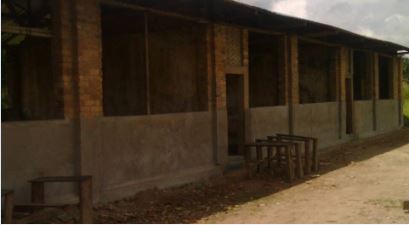 La scuola è stata costruita in mattoni molti anni fa e anche a causa delle piogge, oggi versa in condizioni deplorevoli con seria necessità di riparazioni. Nel frattempo per garantire la continuità delle lezioni hanno ricoperto parte del tetto con paglia e fango, mentre il resto è crollato. Porte e finestre sono distrutte e anche la pittura non esiste più. Manca gran parte dell’arredamento per cui diversi alunni seguono le lezioni seduti per terra. Molti di loro quest’anno, si sono dati da fare per recuperare la paglia e il legno per rifare parte del tetto.