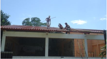 Il progetto prevede il cambio totale della vecchia tettoia al quale si aggiungono lavori supplementari: l’adeguamento dell’impianto elettrico, la sistemazione dell’intonaco esterno e della pittura e lo smaltimento del vecchio tetto in eternit.