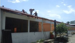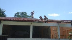 Quando la Scuola è stata costruita, il tetto è stato coperto con eternit (che era purtroppo l’unico materiale a disposizione e donato dall’estero) e non è mai stato sistemato o controllato. Ma le piogge della regione amazzonica e tanti altri fattori ambientali lo hanno deteriorato al punto che sta crollando. Oltre a questo è doveroso far presente che l’eternit è dannoso per la salute dei ragazzi: ogni giorno esce dal tetto una sottile polvere di amianto che si posa sulle panche e sui banchi.