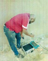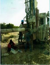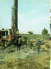 Gli operai stannno lavorando. L’acqua esce già. La gente accorre subito per procurarsi l’acqua quando sente il rumore del generatore.