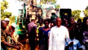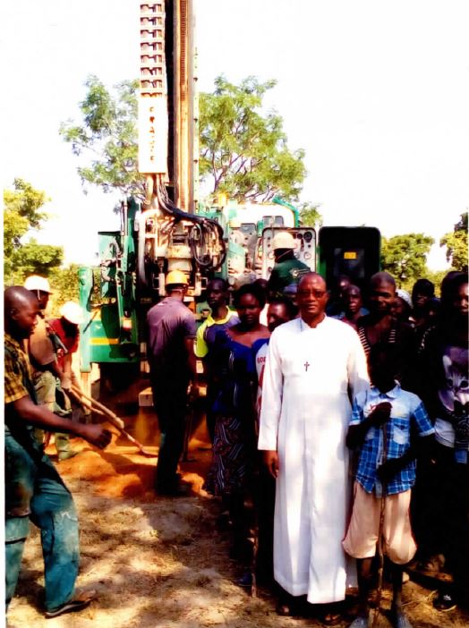 Insieme abbiamo cominciato il lavoro con una preghiera fatta dal catechista Emmanuele BAKALA. Il capo del villaggio ha preso la parola per tutti e dare le sue benedizioni per il buon svolgimento del lavoro. Dopo quattro ore di tempo abbiamo trovato l’acqua. Ma la terra era molto molle, si rompeva facilmente secondo la testimonianza degli operai. Dopo tutta una giornata di duro lavoro senza risultato soddisfacente in rapporto alla qualità della terra, sono stati obbligati a lasciare questo luogo del forage per cominciarne un altro. Gli operai hanno preso un po’ di tempo per riposarsi nella notte e di buon mattino hanno ripreso il lavoro di un nuovo scavo. E dopo aver lavorato una mezza giornata, finalmente verso le ore 11 del mattino hanno finalmente trovato l’acqua, abbondante e con una buona terra.