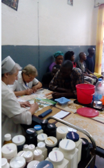 Attività generatrici di reddito:consegnato materiale a 30 detenuti per lavori d’artigianato( lana,tessuti,sacchi….).