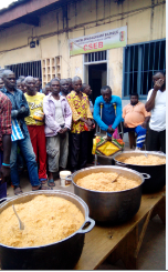 Testimonianza del catechista Moise: ai benefattori,sono incaricato del banco alimentare e della consegna,assieme alla mia equipe, un sincero grazie per il sostegno. Attraverso questa opera noi non siamo soli. Continuiamo il nostro progetto di artigianato,per rendere meno difficile il soggiorno in carcere.